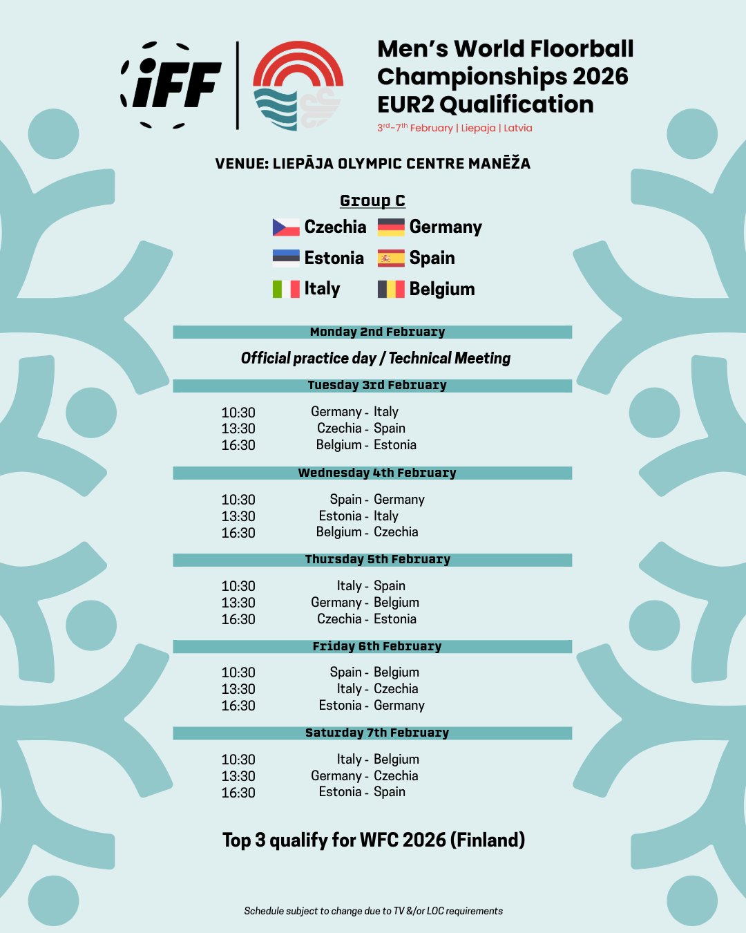Teams: Czechia, Germany, Estonia, Spain, Italy, Belgium