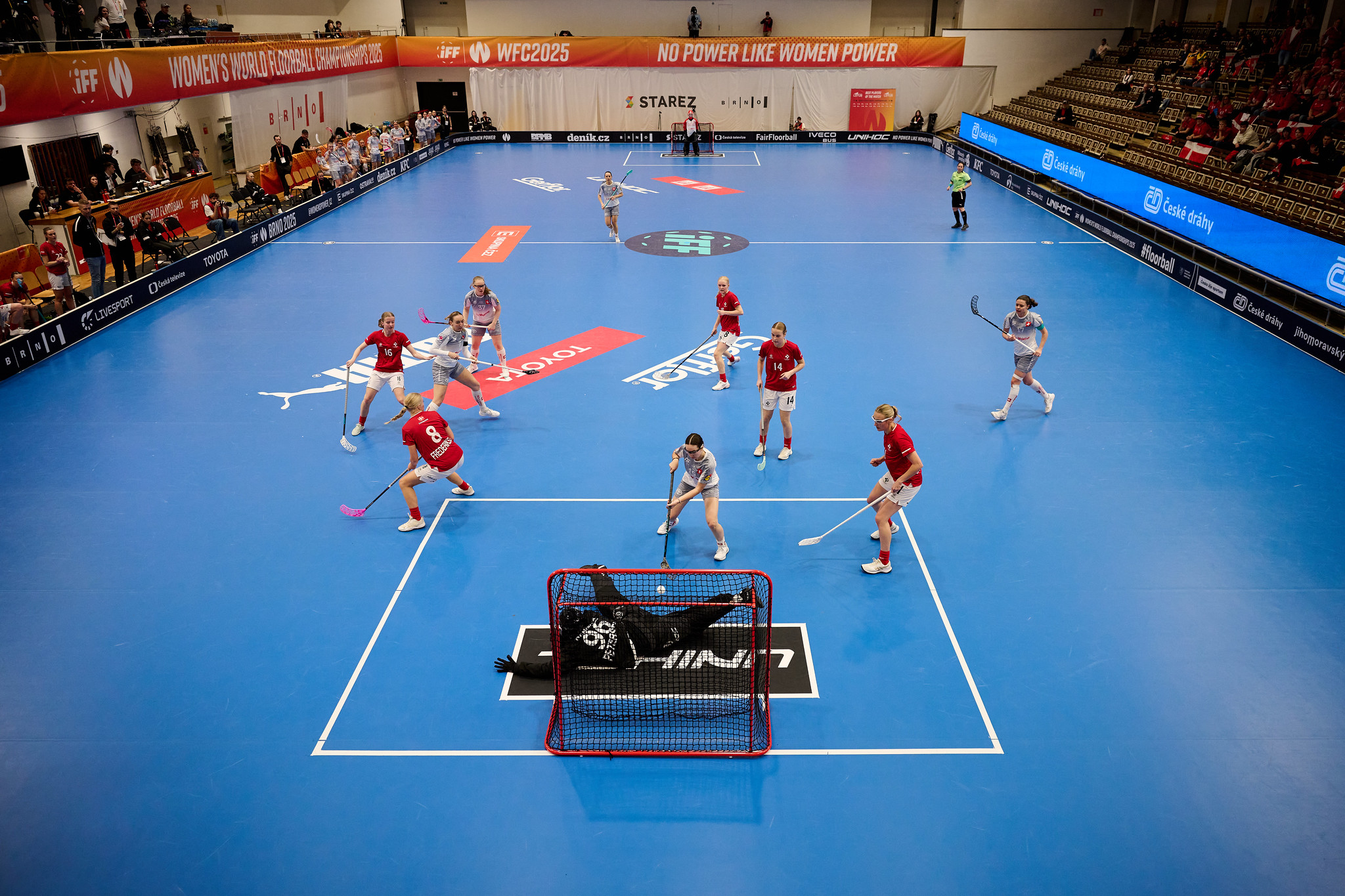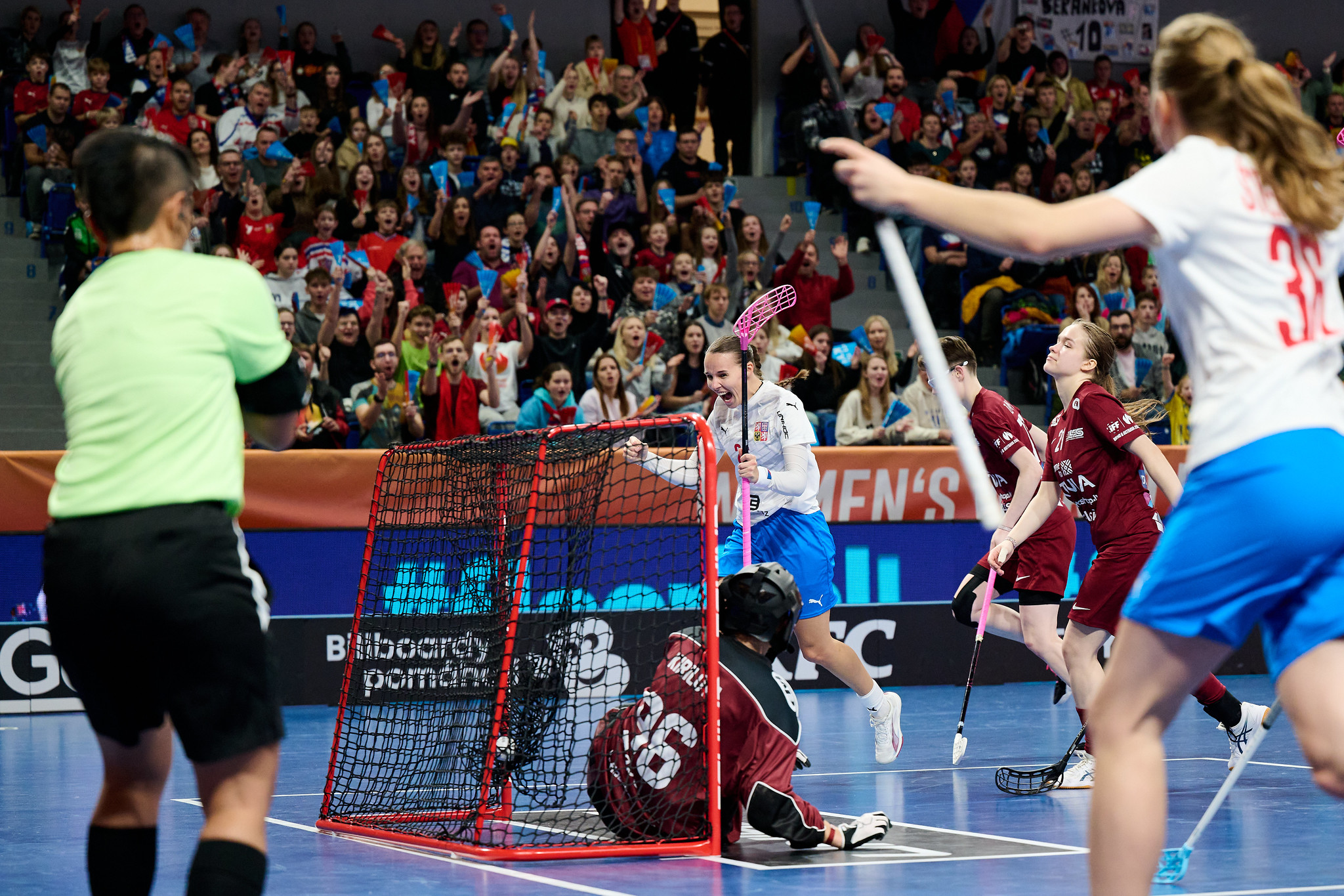 The Czech women’s floorball team did not falter in their second match at the World Championships either, winning 6:2. Although their opponents from Latvia fought hard in some parts of the match, it was not enough to earn them any points in the end. The match was watched by almost 2,300 fans, who saw Karolína Klubalová and Barbora Husková achieve a 1+1 statistic.