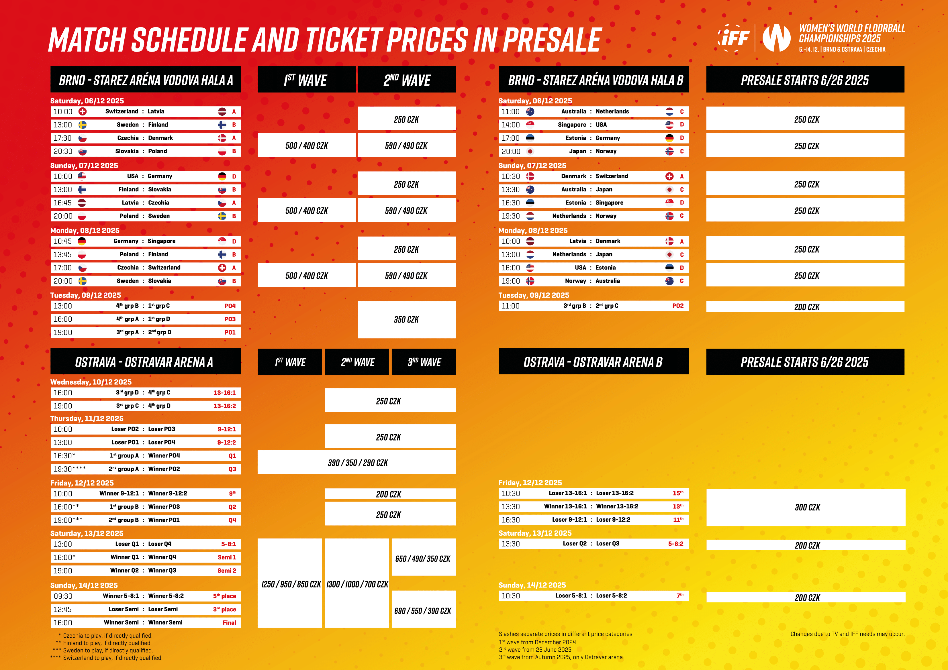 Tickets are still available for the Women’s World Floorball Championships 2025 in Brno & Ostrava this December. Click the link to register and purchase! ![]()